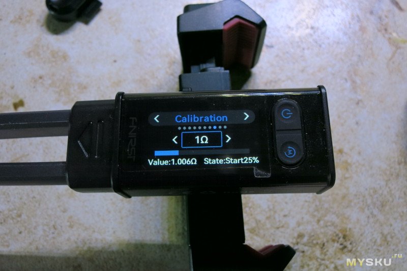 Для калибровки нужно выбрать нужное значение на экране, подключить резистор нужного номинала и нажать на джойстик. Калибровка каждого значения проходит секунд за 30.
