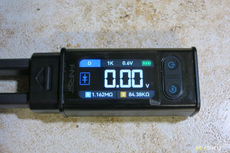 В этом режиме можно проверять сопротивления, емкости, индуктивности и диоды. По умолчанию включается режим AUTO, джойстиком можно принудительно включить любой из режимов. Во всех режимах (кроме D диодов) можно выбрать