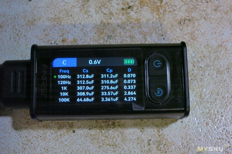 После первого заказал, на 100кГц показания ёмкости скачут от 0 до хз чего, и — странно — на диодах Шоттки тоже жутко погоду показывает.