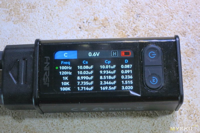 У второй версии выбор частоты и напряжения тестирования 100Hz, 120Hz, 1kHz, 10kHz, 100kHz; 0.1V, 0.3V, 0.6V, 1V.