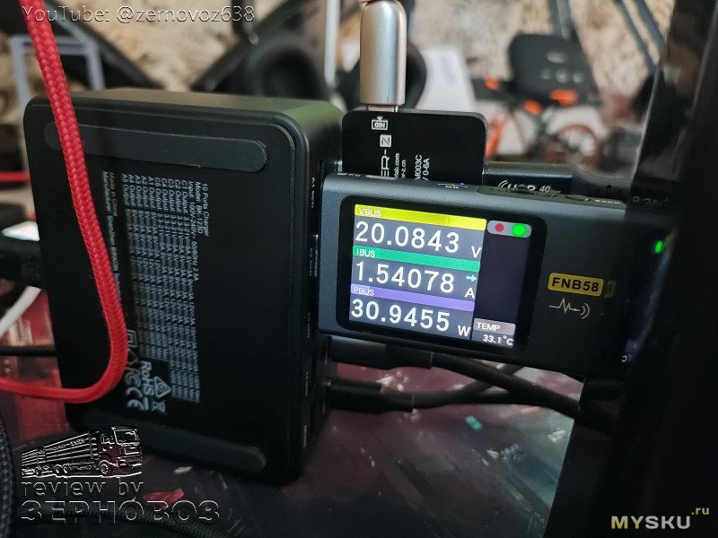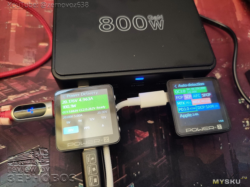 добавляем ещё один тестер, упс, на соседнем порту нельзя взять более 65Вт? никогда такого не было… из хорошего — С1 стоит как вкопанный и молча молотит свои 100Вт