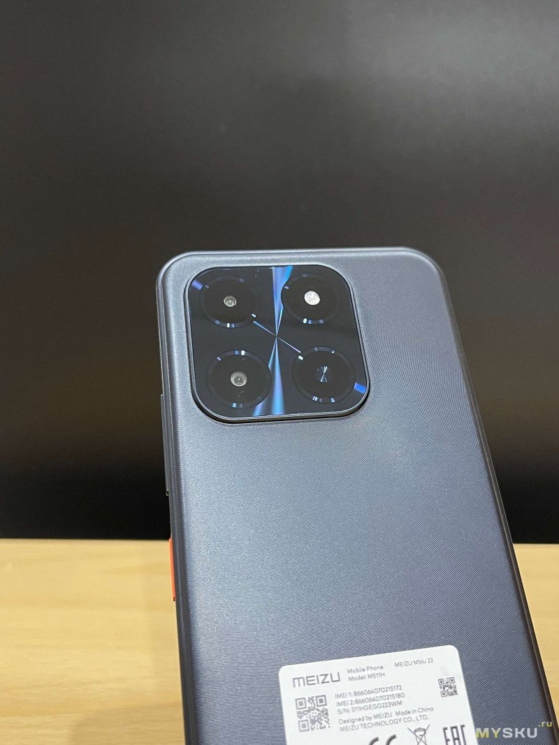 Внешний вид Meizu Mblu 22 соответствует современным тенденциям бюджетных смартфонов. Перед нами типичная модель своего класса, которую легко перепутать со многими похожими устройствами. Дизайн выглядит аккуратно и современно, но при этом не выделяется какой-либо яркой индивидуальностью.Корпус выполнен с плоскими гранями, а на задней панели расположен крупный прямоугольный модуль камер. По его оформлению заметно, что дизайнеры ориентировались на решения, которые можно увидеть у популярных моделей Xiaomi. При этом расположение вспышки и декоративных элементов выглядит немного спорно и местами даже перегружено.