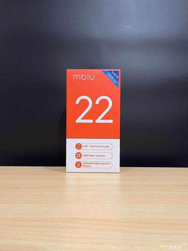 Коробка Meizu Mblu 22 сразу бросается в глаза благодаря обновленному фирменному стилю. Если вы когда-нибудь держали в руках смартфоны Tecno, то почувствуете эффект дежавю: компоновка элементов и цветовая игра практически идентичны.Лицевую сторону украшает гигантская цифра «22», дополненная аккуратным логотипом и техническими деталями в углах. Снизу краткий паспорт устройства с основными цифрами. Выглядит все это свежо и опрятно. К качеству материалов претензий нет: картон прочный, а полиграфия не смазывается и радует глаз четкостью линий.