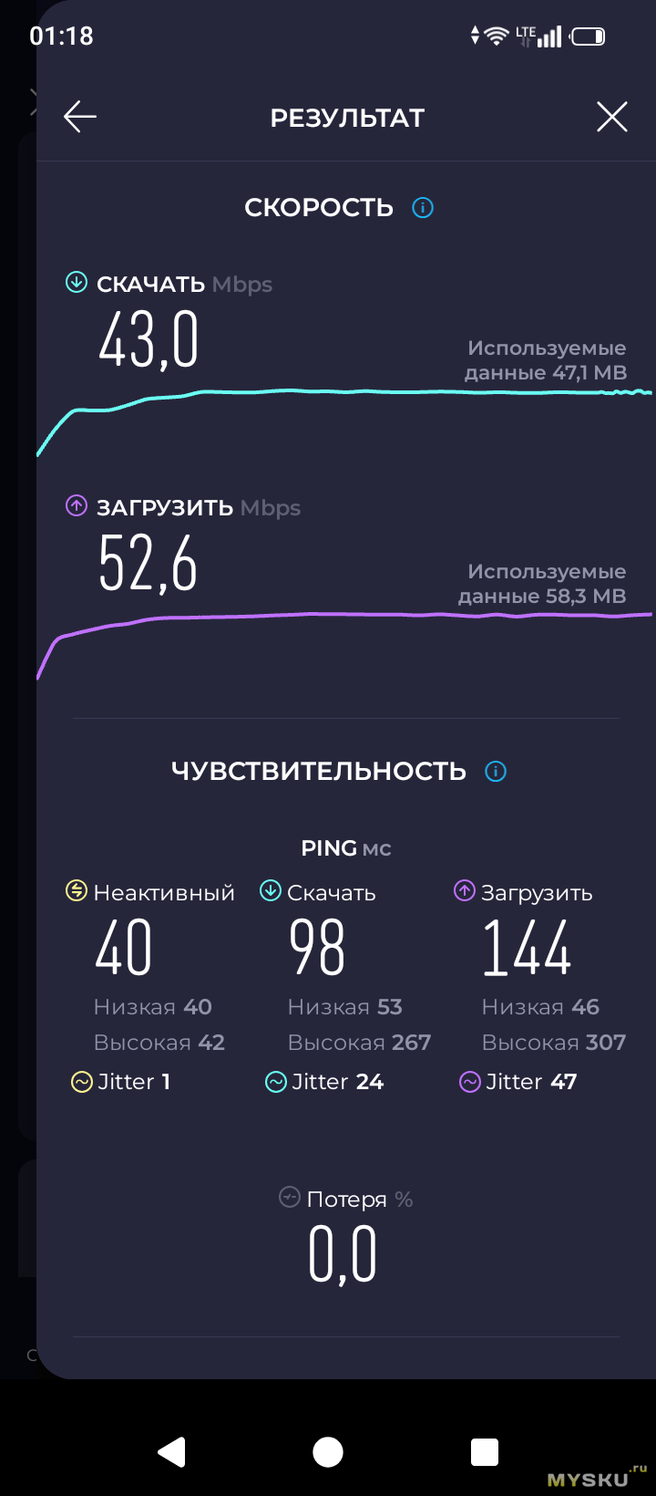 Сетевые возможности Meizu Mblu 22 ограничены аппаратной базой начального уровня. Тесты показывают потолок скорости по Wi-Fi в районе 50 Мбит/с. Этого достаточно для стриминга в Full HD или соцсетей, но по меркам 2026 года результат выглядит слабым. Причина кроется в использовании устаревшего стандарта Wi-Fi 4 (802.11n). Отсутствие поддержки Wi-Fi 5 (802.11ac) и тем более Wi-Fi 6 — решение откровенно архаичное для современного устройства.