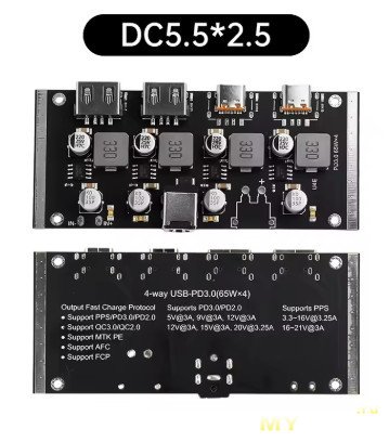 Что касается протоколов, то плата поддерживает зарядку устройств вплоть до 12В.