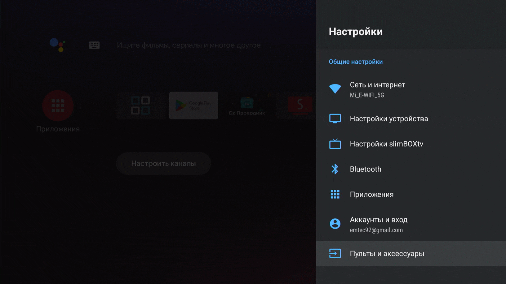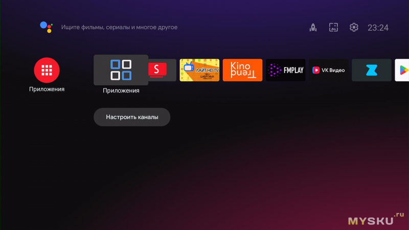 Включив приставку, я приятно удивился. В отличие от W2, из коробки здесь уже почти классический Google TV.
