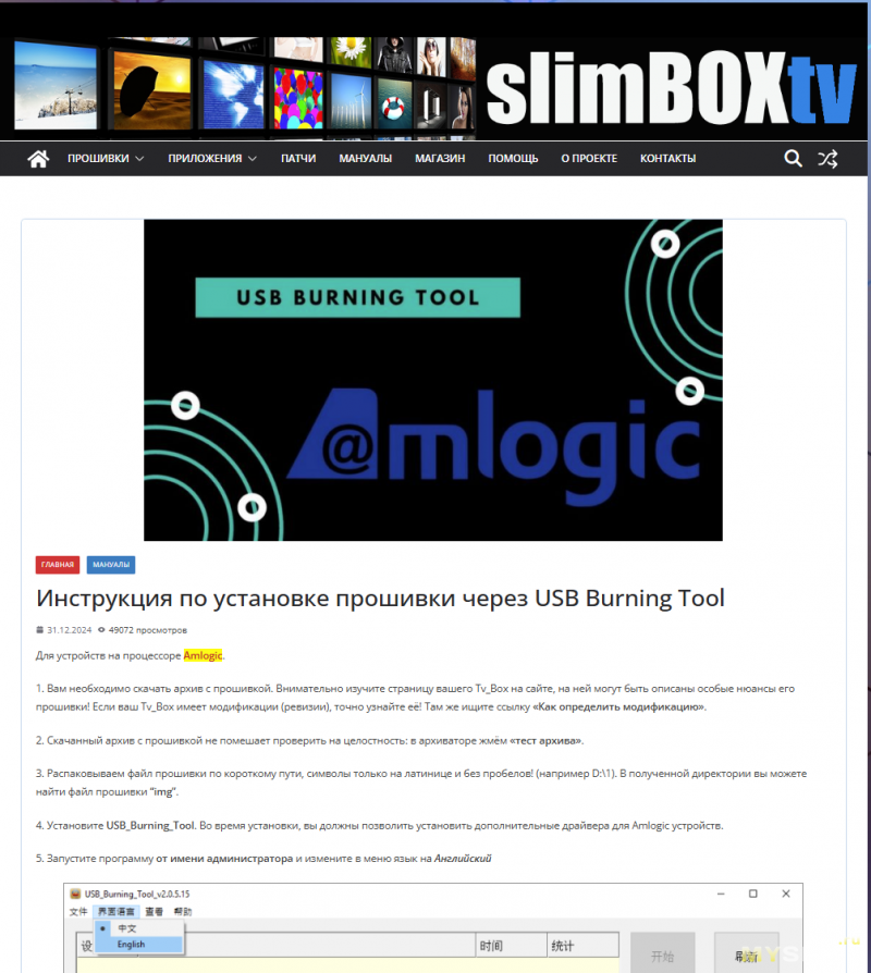 На сайте есть подробная инструкция по прошивке. Важно выбирать версию программы с драйверами, иначе компьютер не увидит приставку.