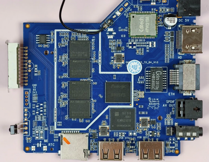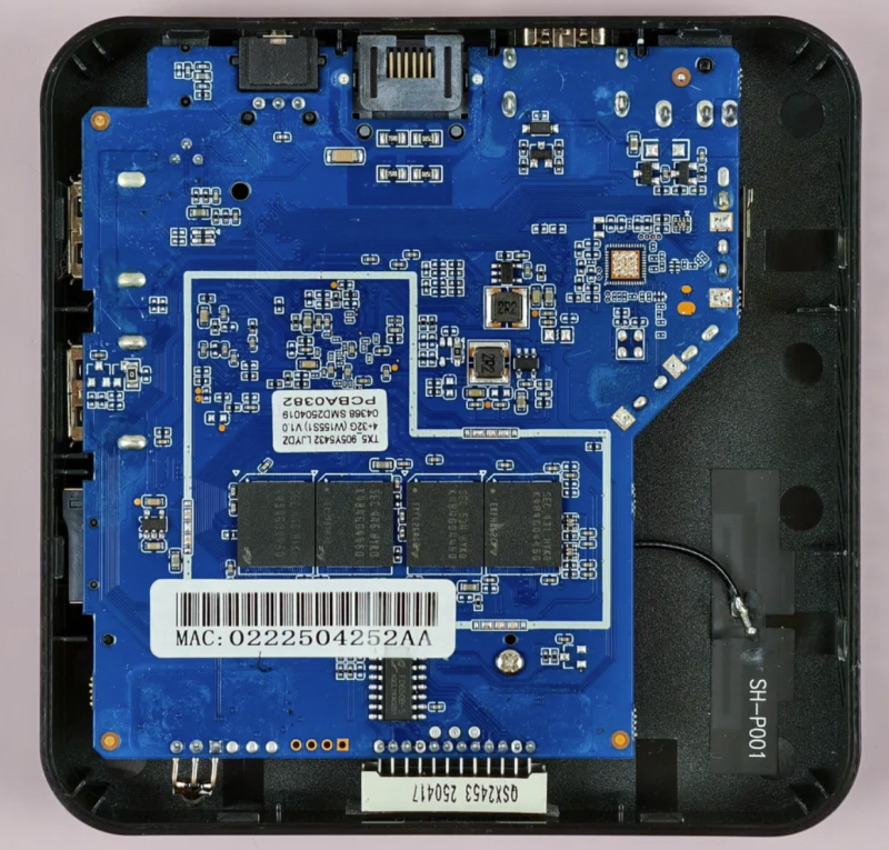 Корпус узнаваем. Однако, в отличие от W2, здесь он «дышащий», с множеством перфораций как по бокам, так и снизу. Это однозначно плюс, так как такое решение улучшает охлаждение. К слову, раз уж упоминаю о W2 как о предшественнике, стоит отметить, что Amlogic S905Y5 выполнен по техпроцессу 6 нм вместо 12 нм в W2, что делает его более «прохладным» и энергоэффективным. А в целом у этих кристаллов есть отличие и в процессорных ядрах (Cortex-A55 против Cortex-A35). В целом S905Y5 на ~25% производительнее.