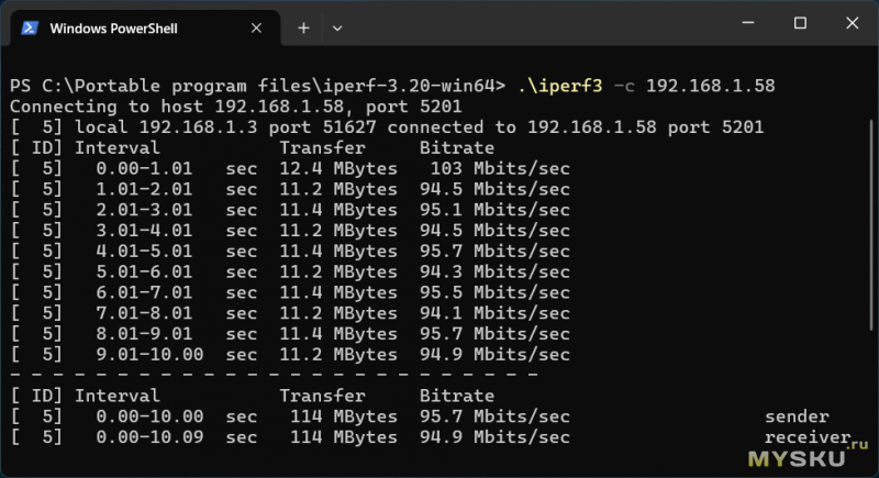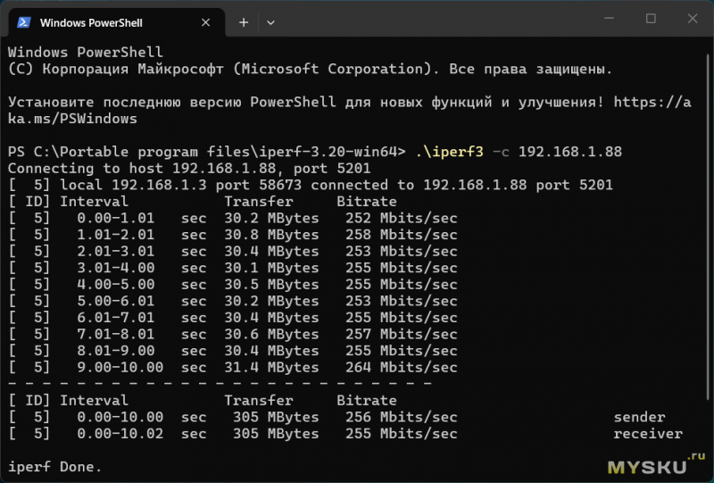 Скорость по LAN — 100 Мбит/с, по Wi-Fi 5 ГГц — 255 Мбит/с. Wi-Fi здесь — слабое звено (об этом расскажу чуть ниже). Этот тест — синтетический, ради цифр. На практике 100 Мбит/с достаточно для любого 4K BD-ремукса (битрейт которых редко выше 60 Мбит/с).