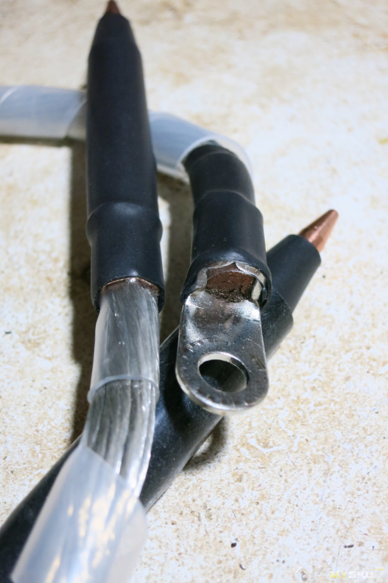 Вторая пара проводов под отдельные электроды с одной стороны обжата так же, с другой провод обжат в медную гильзу, в которую вставляется электрод.