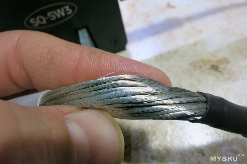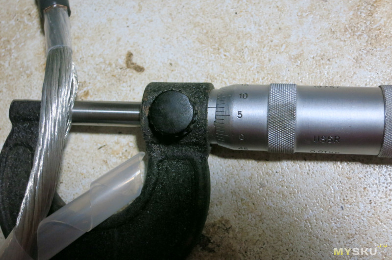 Диаметр жилок 0,07мм, считать их не буду, не просите. Провод гибкий, как веревка.