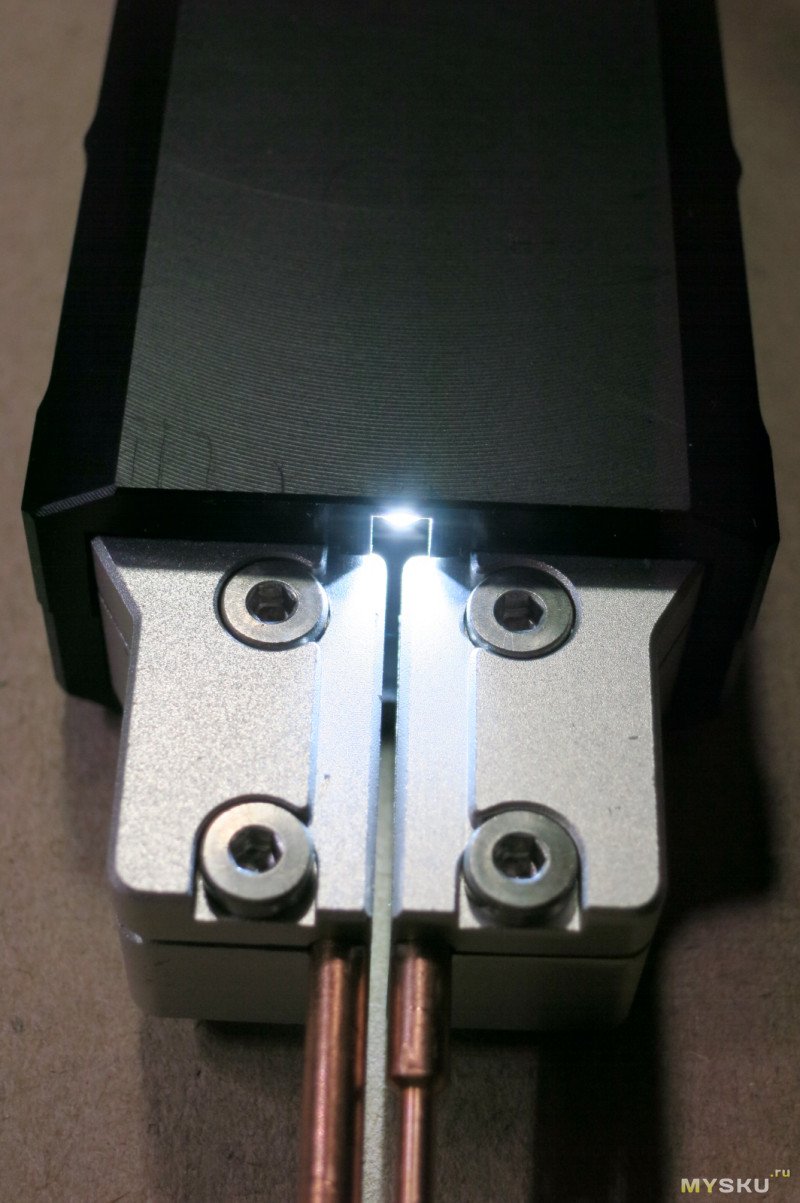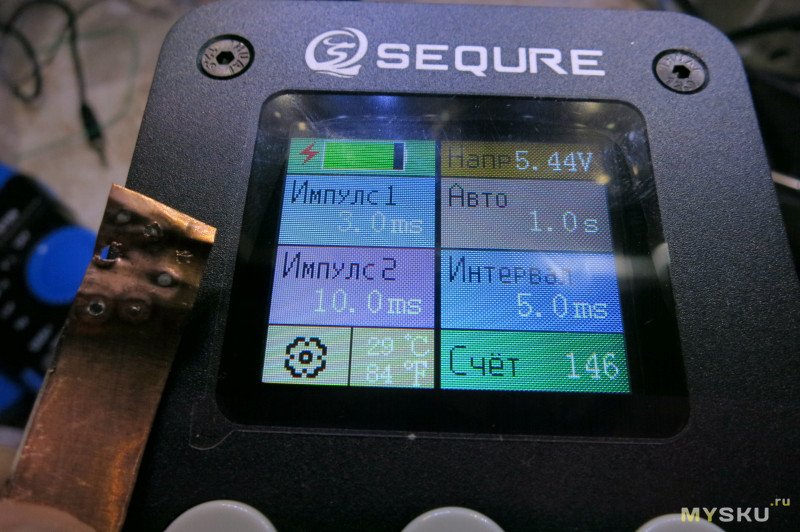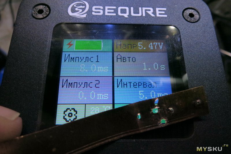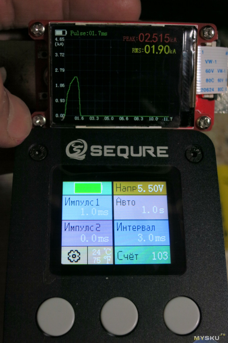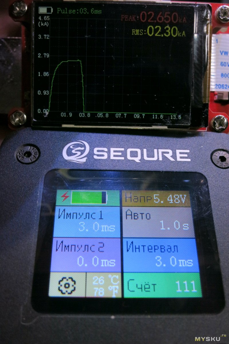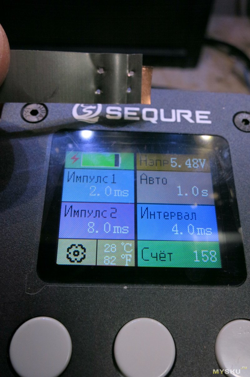 В обзоре не раскрыта тема работы на максимальной мощности, что ещё больше заставляет подозревать, что мощи у SEQURE не хватает варить толстые ленты. Кстати, я по приколу попробовал на Docreate DO-02 приварить нержу толщиной 1мм. Получилось так, что не оторвёшь. Но так приварилось, только когда я в одну точку загнал около 20 импульсов с минимальной задержкой. Но сам факт такой возможности был для меня удивителен. И это при условии, что реально, по моим замерам Docreate DO-02 дает ток всего около 1100A.