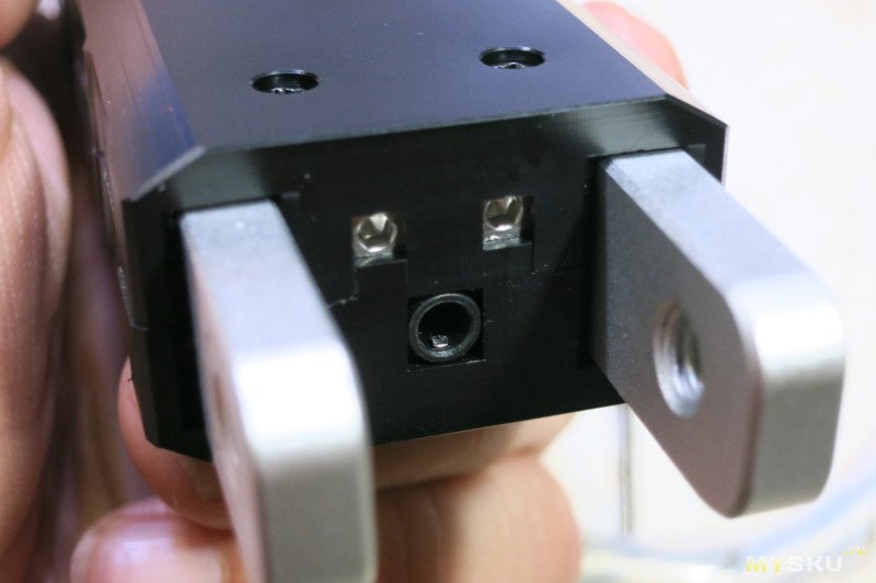 В верхней части ручки есть два винта регулировки усилия предварительного сжатия пружин и гнездо 3,5мм под аудиокабель.