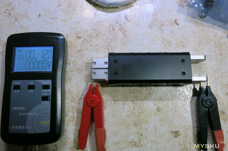 Кабеля можно присоединять не только к верхней части ручки, но и к нижней, ближе к электродам. Это сэкономит 0,12мОм на каждом проводе.