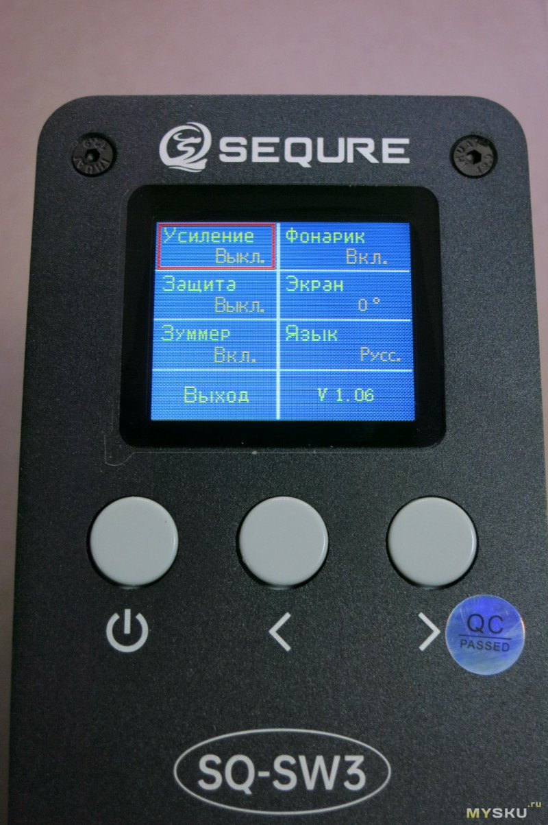 Если выбрать шестеренку, и нажать кнопку влево или вправо, то можно войти в меню дополнительных настроек, там тоже 5 пунктов:- Усиление вкл и выкл.