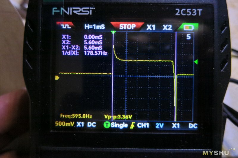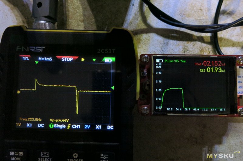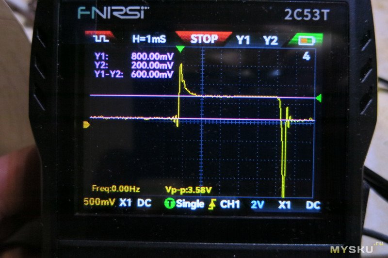 Осциллограф показал длительность импульса 5,6мс, шунт примерно 5,7мс.