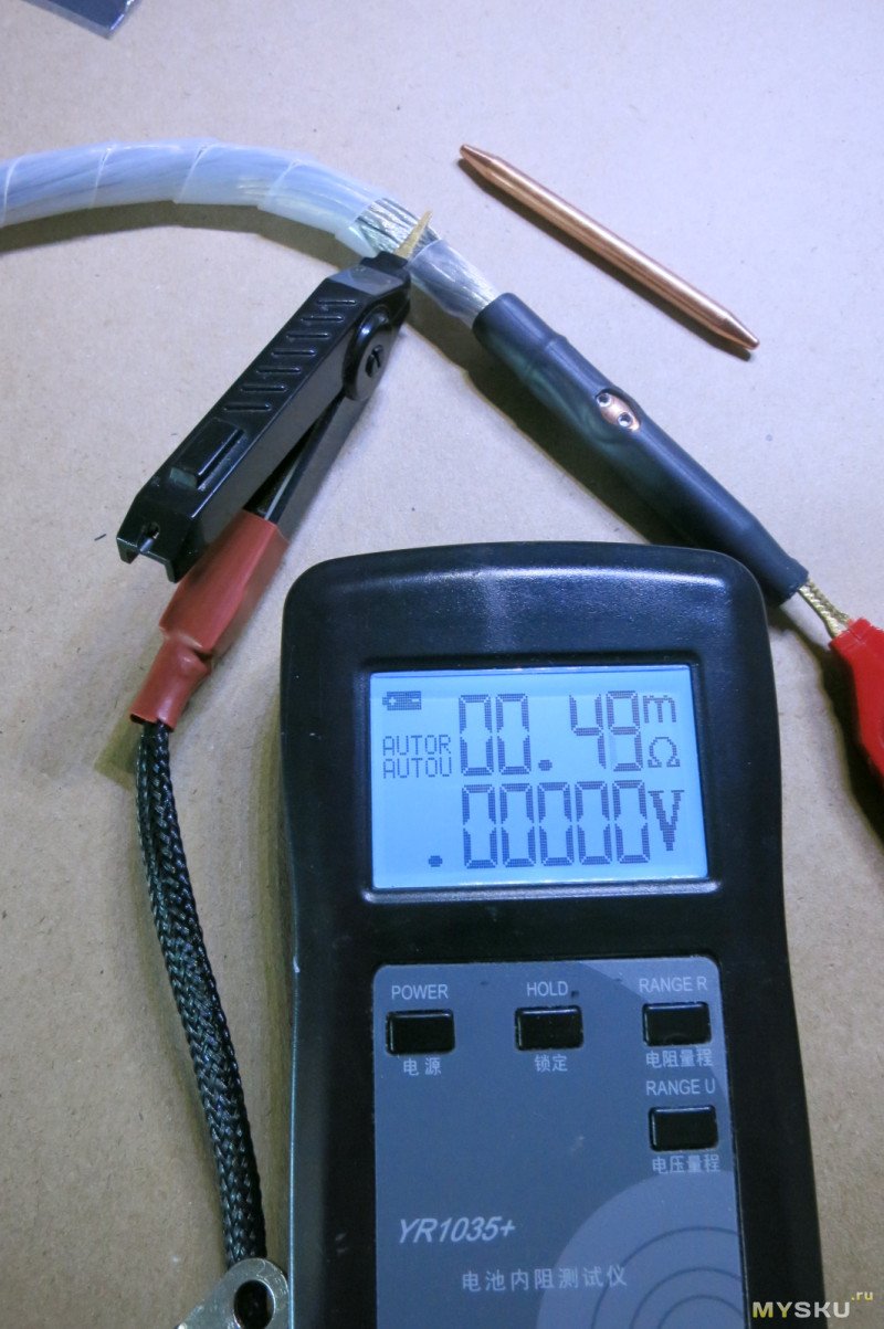 У проводов для для ручки сопротивление чуть меньше — 0,4мОм.
