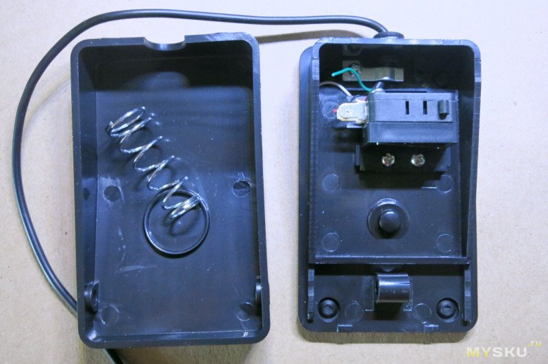 Педаль просто замыкает два контакта, длина провода примерно 1.5 метра. Этой длины хватает, если сварка стоит на столе и может хватить даже если она стоит на полке над столом, а сварочные провода свисают на стол. Внутри микрик с NC и NO контактами, два провода из четырех припаяны к NO и два не задействованы. Если нужно, то удлинить провод не проблема.