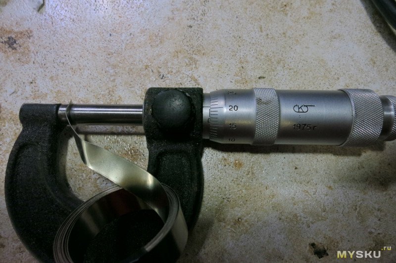 У меня есть запасы лент другой толщины. Пробую ленту 0,15мм, сталь, покрытая никелем.