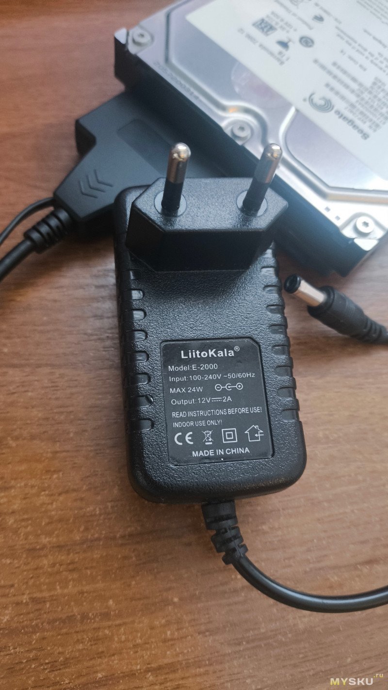 2. 12 вольтовый адаптер с честной мощностью не ниже 24Вт (пусковой ток по 12 вольтовой линии для большинства дисков находится в пределах 2А, поэтому хотя бы 2А со стороны блока нужно иметь);