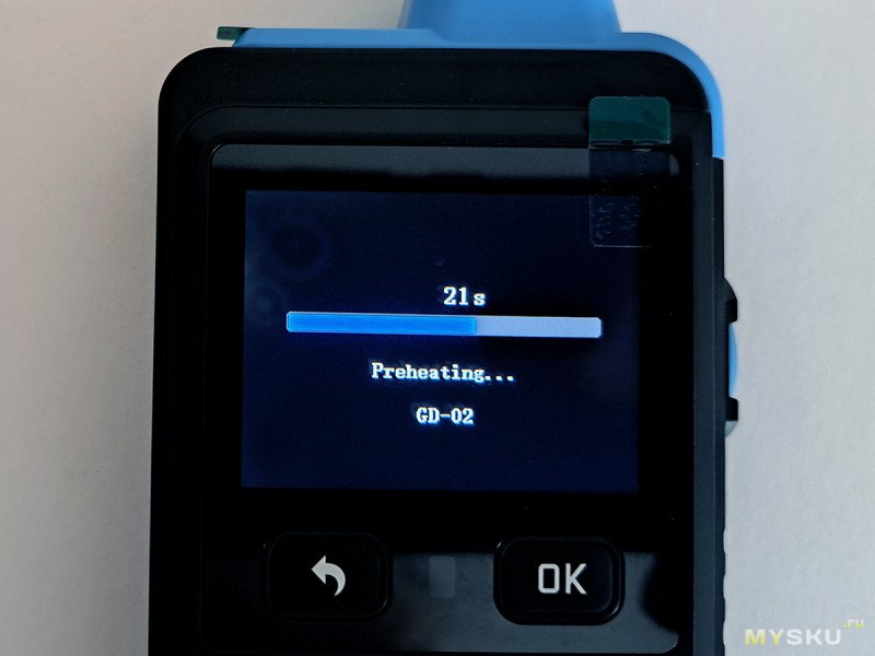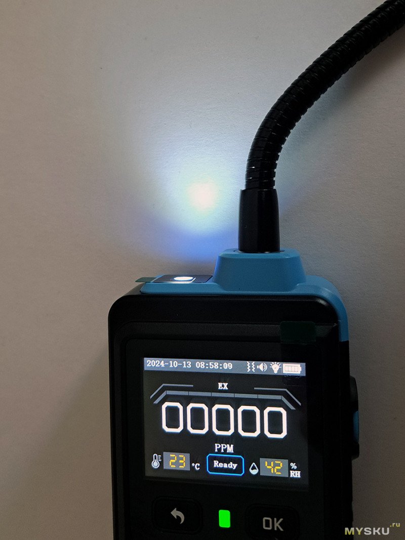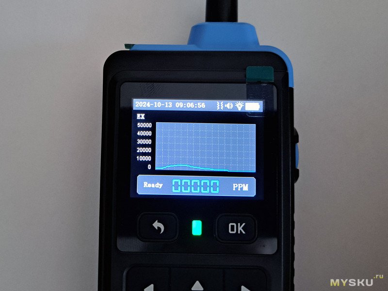 Включаем прибор. Датчику нужен предварительный разогрев в течение 15-16 сек.