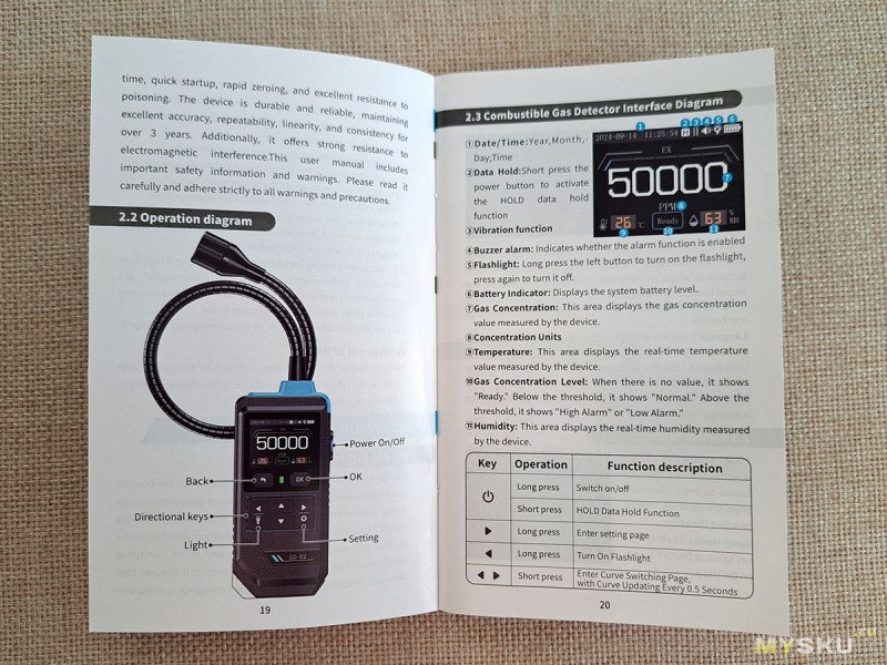 В комплект входят: руководство пользователя и USB кабель. Детектор работает на встроенном аккумуляторе.