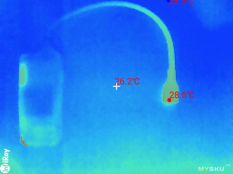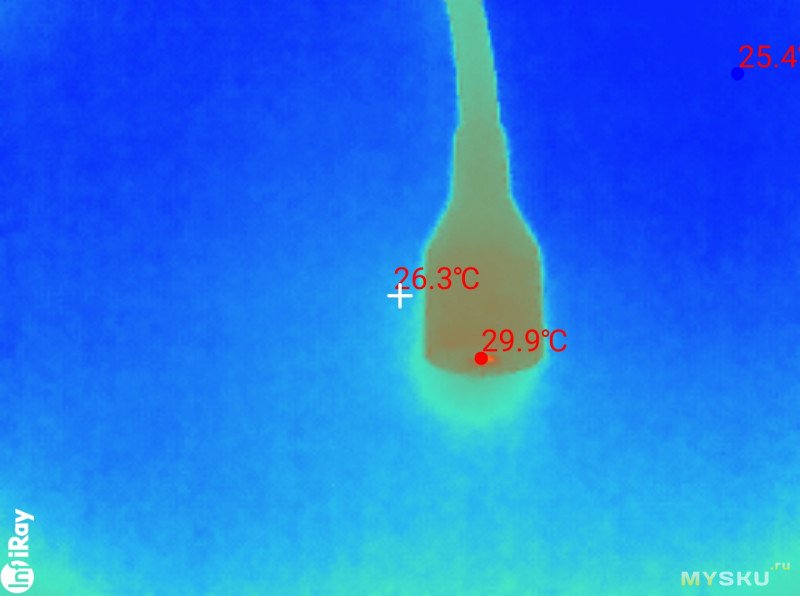 Кожух датчика разогревается несильно, в районе 30 градусов.