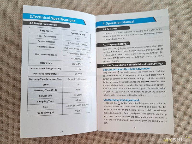 3. Обнаруживаемые газы: метан, пропан, изобутан.