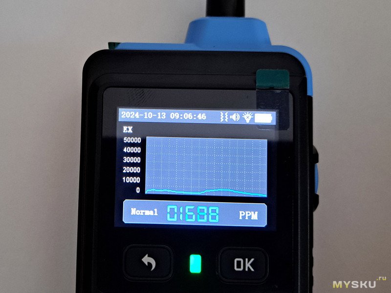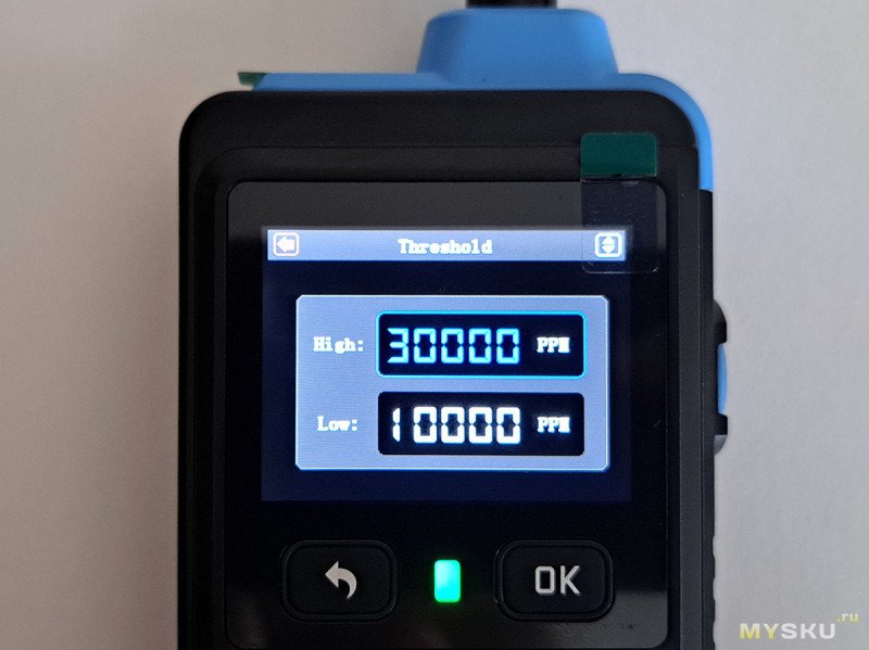 Ниже порога 1500 PPM показания сразу резко сбрасываются на ноль. Но это можно откорректировать в настройках.