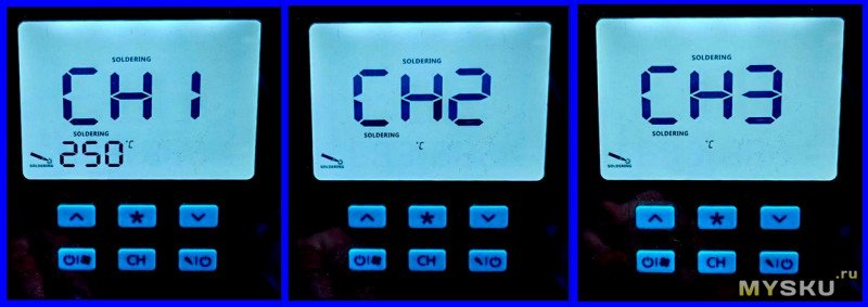 Дополнительно: Есть 3 ячейки памяти для быстрых пресетов. Выбор осуществляется удержанием и последующим нажатием кнопки CH