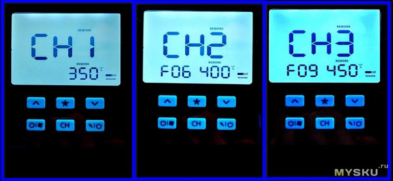 Настройка фена включает в себя четыре основных пункта (с 4-го по 7-й). Логика управления такая же, как и у паяльника: