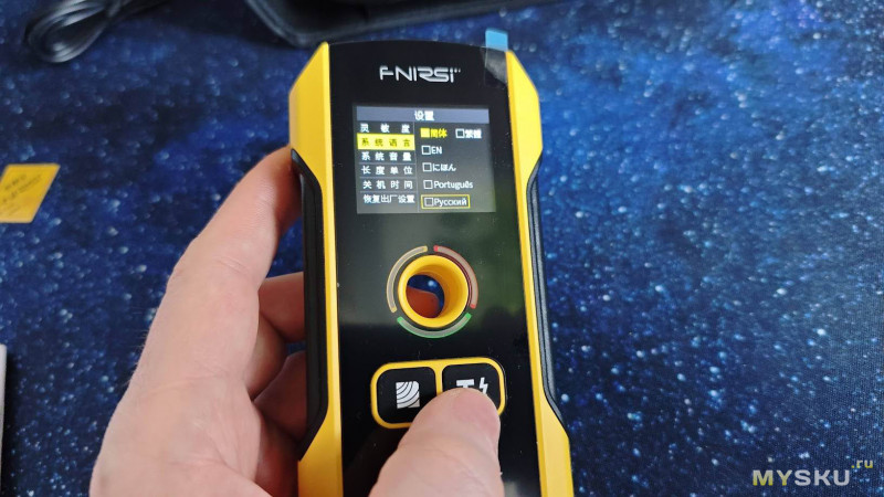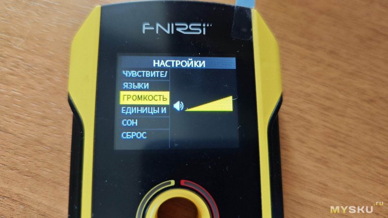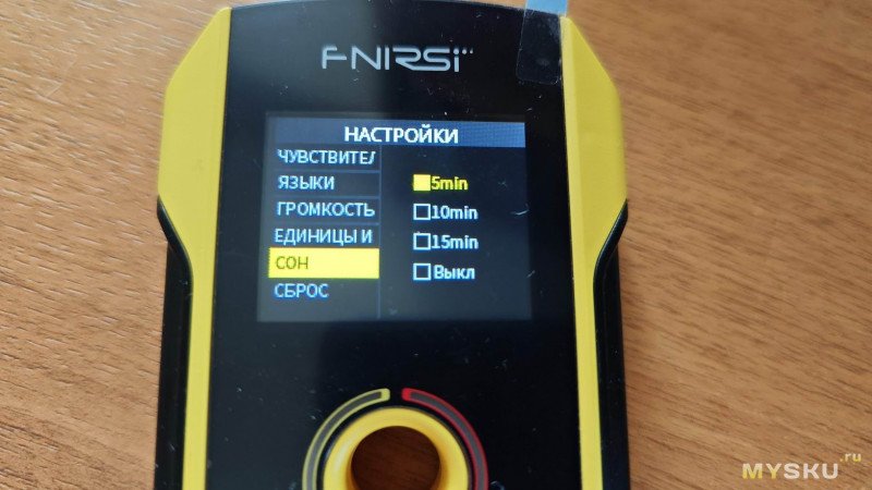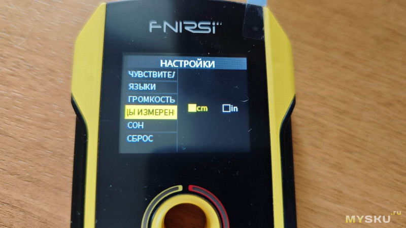 Далее в меню идёт уже разобранный выше пункт смены языка, за ним настройка уровня громкости звуковой индикации, далее выбор единиц измерения: сантиметры или дюймы, следующий пункт отвечает за установку времени автовыключения в диапазоне от 5 до 15 минут.