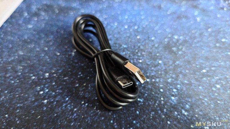 Кабель для зарядки имеет длину 1 метр. Это стандартный USB кабель в виниловой изоляции с Type-C разъёмом.
