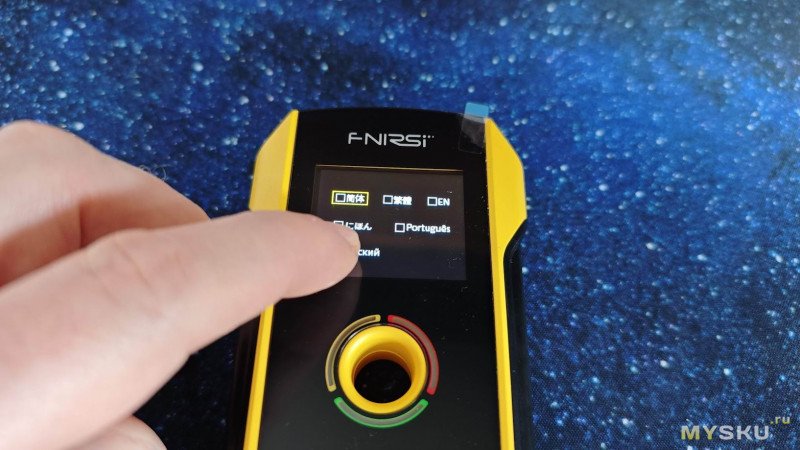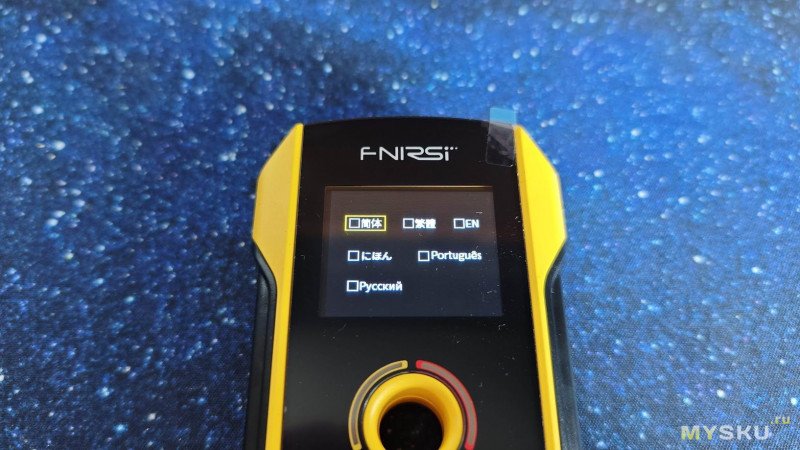 Включается прибор коротким нажатием кнопки On/Off. Затем появляется меню выбора языка.