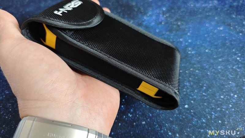 По бокам находятся эластичные ленты, которые стягивают чехол, но в то же время позволяют без усилий извлекать прибор из чехла.