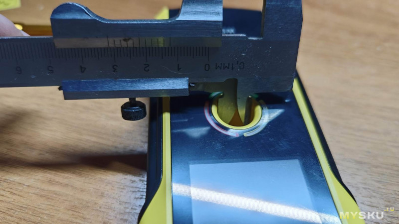 Световая индикация в виде кольца вокруг отверстия работает в связке экраном. Зеленый цвет — чистая зона, можно сверлить.