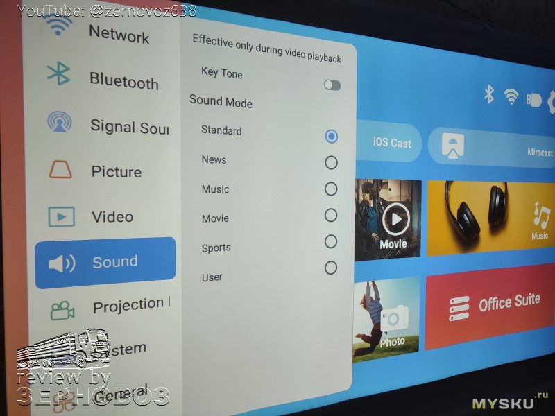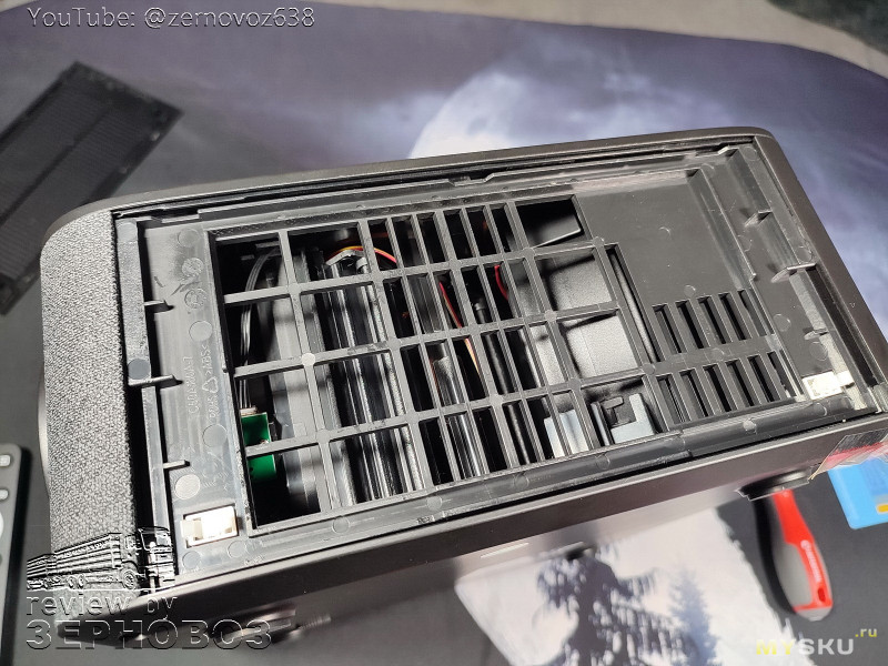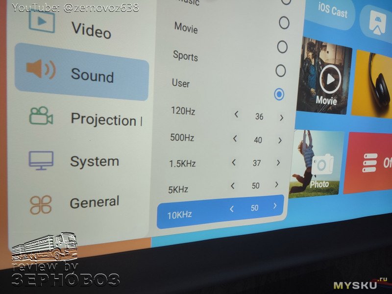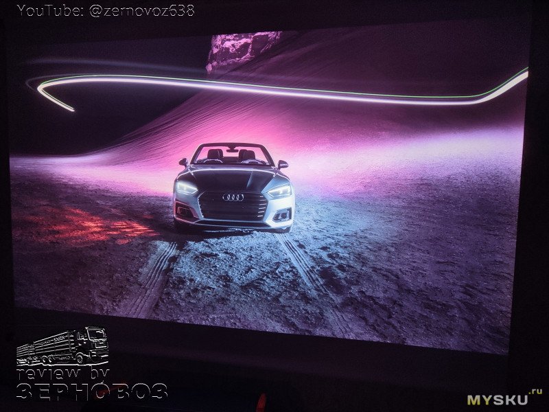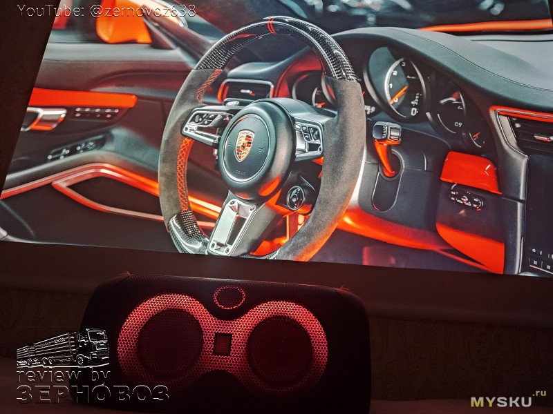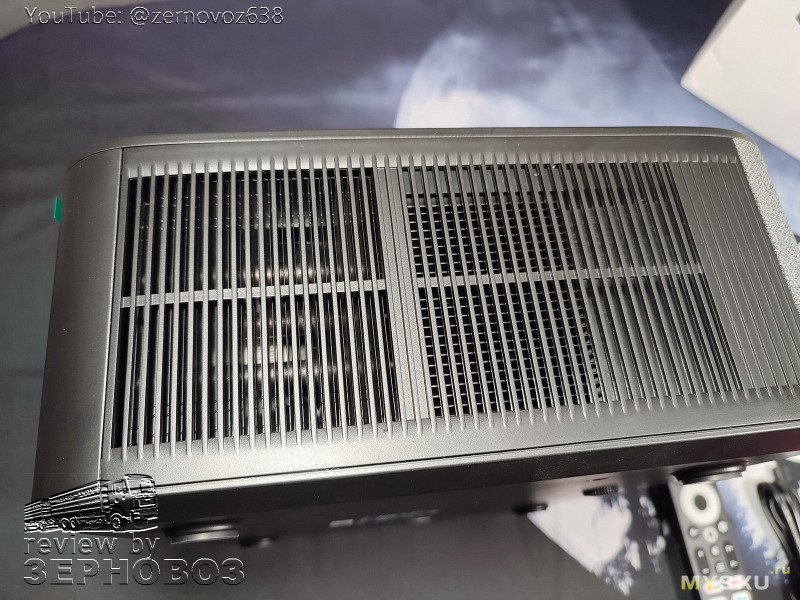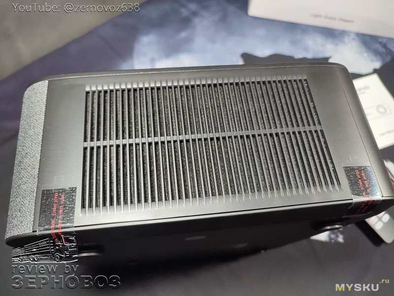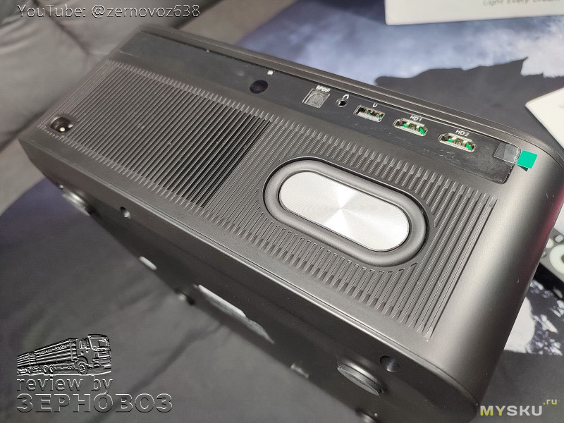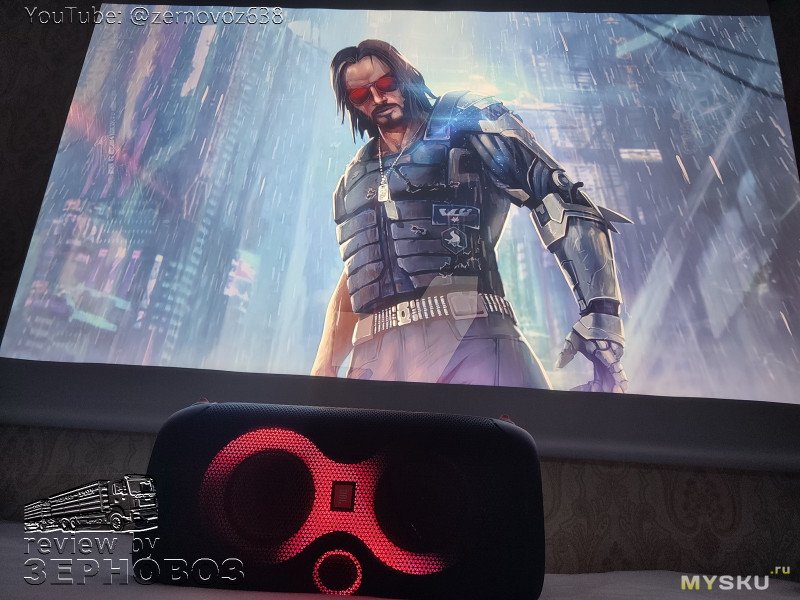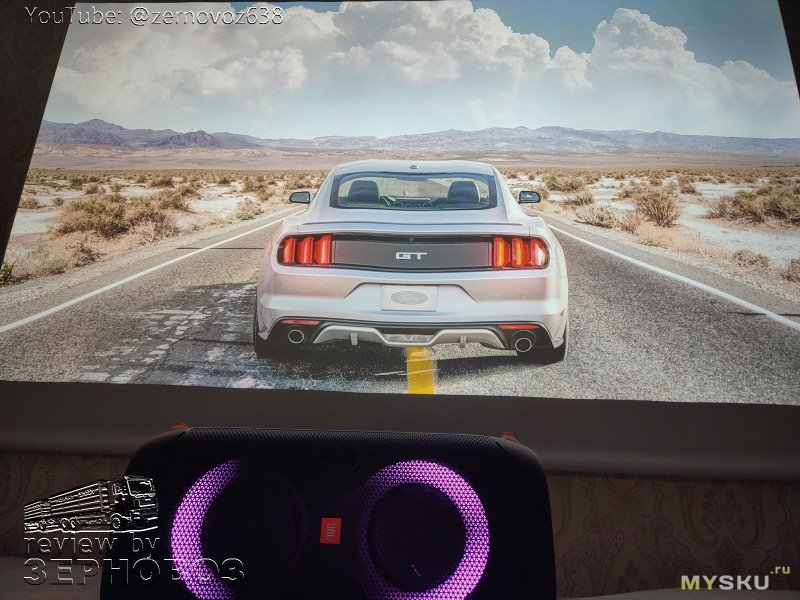 По звуку. Мои обзоры знаете. Хочу громко и круто. Здесь заявили 2х8Вт и они даже есть внутри корпуса проектора. Но звук лучше не крутить выше 20% (это в комнате 15-20кв.м). Просто спикеры. Баса нет, глубины нет. Для спокойного кино или мультиков нормально. Блок-бастер уже не то. Любая внешняя блютуз-колонка от 15-20Вт и даже не от супер именитого производителя будет поинтереснее. На низкой громкости хватит и проектора. Но без изысков. И в это же время я верю в своего спонсора — визуально динамики должны работать лучше. Ждём доработки. И да — пассивный излучатель это муляж. Но красивый.