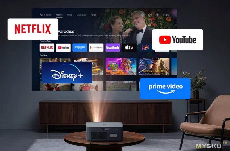 FullHD проектор VEVSHAO A24. Очень яркий домашний проектор с Google Android TV и компромиссами в smart части