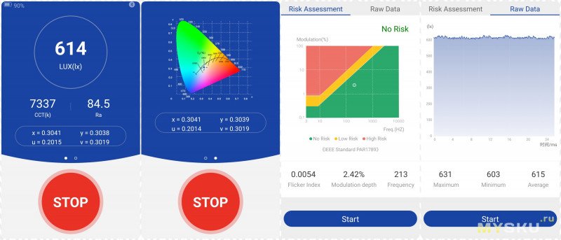 Как и обычно, заявленные 1700 ANSI люмен — цифра с запасом. Но главное, что всё равно по факту получаем ≈860 ANSI люмен, и это очень ярко. Кто ярче — шаг вперёд.