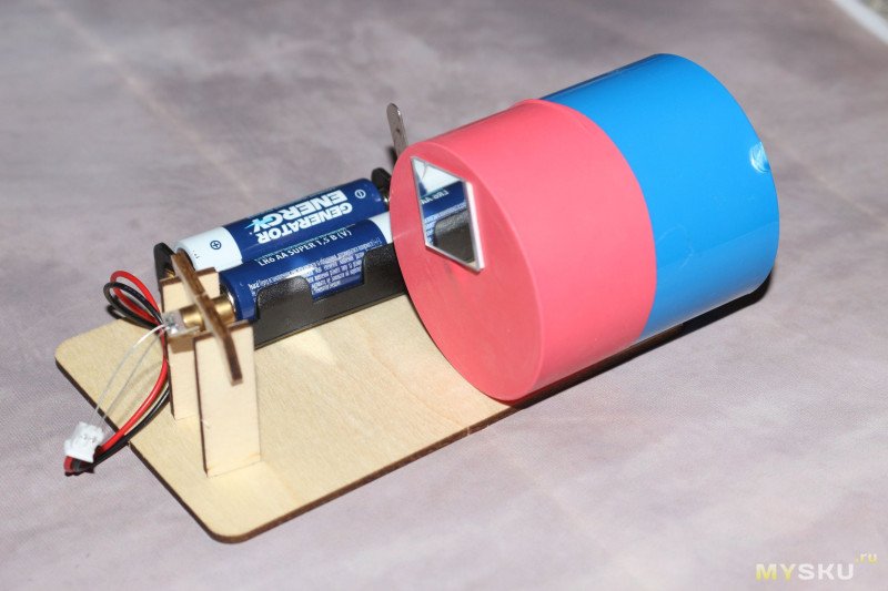 Возьмите маленький моторчик, расположите его горизонтально. Так же, как лежит цилиндр с мембраной.