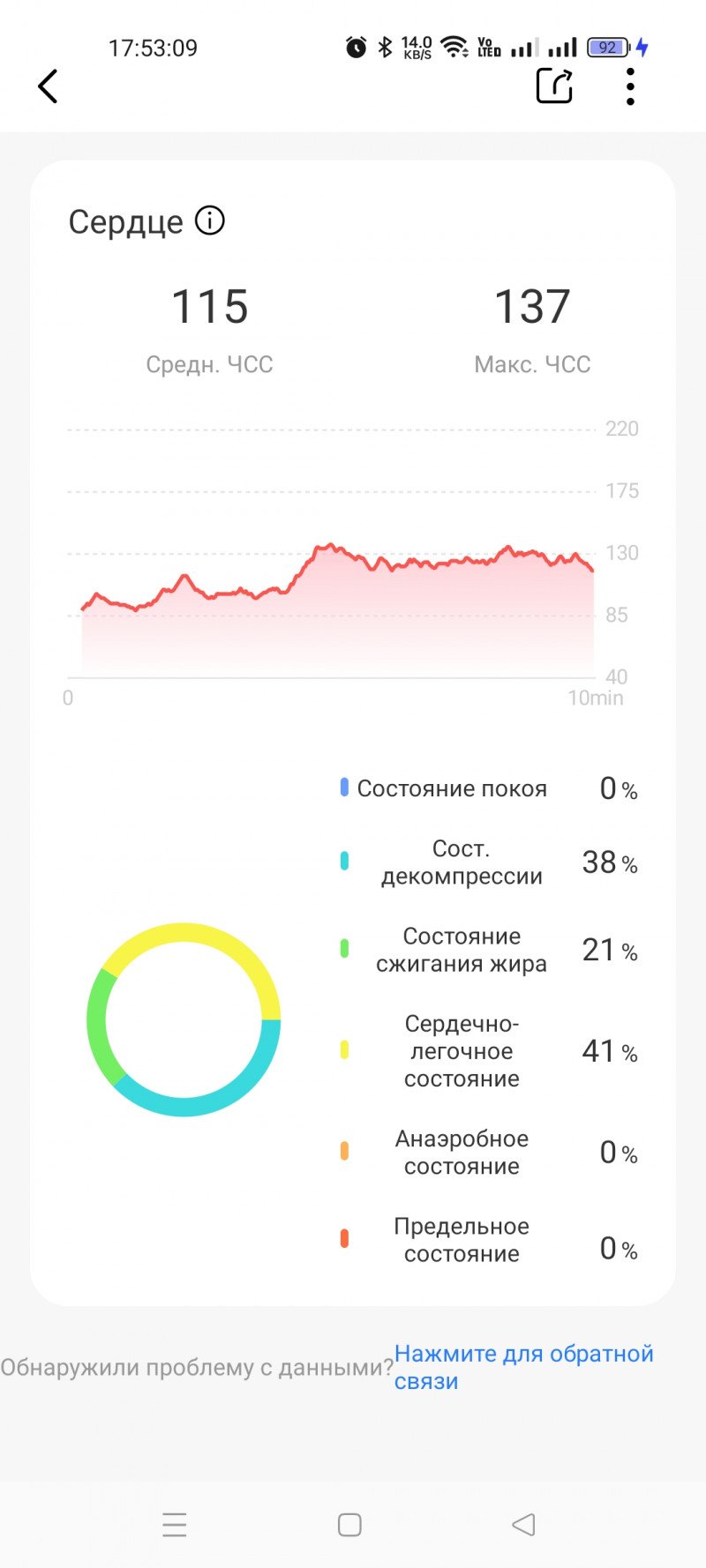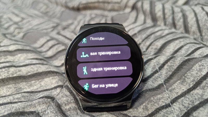 Заявлено поддержка около 150 различных спортивных режимов. Как мне показалось многие отличаются лишь названием, А в принципе выполняются одни и те же опции. И с фиксации данных с часов производится запись пульса, времени тренировки, и высчитываются сожжённые калории. Можно использовать смарт-часы с GPS от смартфона и тогда производить тренировки на улице. В этом случае будут расширенные возможности: запись трека, скорость движение, темп, длина шагов. Всё это хранится в памяти смартфона.