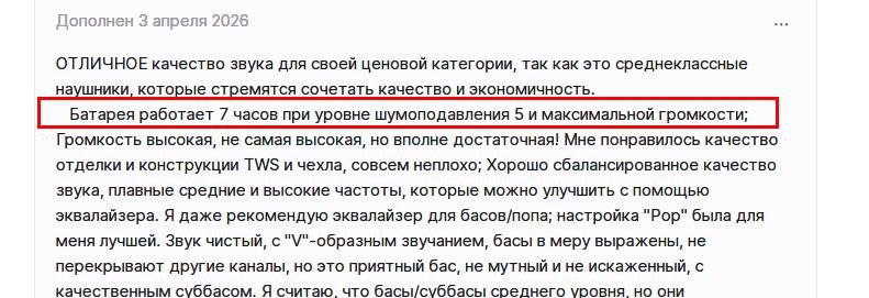 И на такой громкости наушники проработали 11 часов! Я не помню подобного результата у других внутриканальных моделей. Заряда кейса хватило на три полноценных зарядки наушников и еще на 7 с половиной часов. Все вместе 40 с половиной часов.