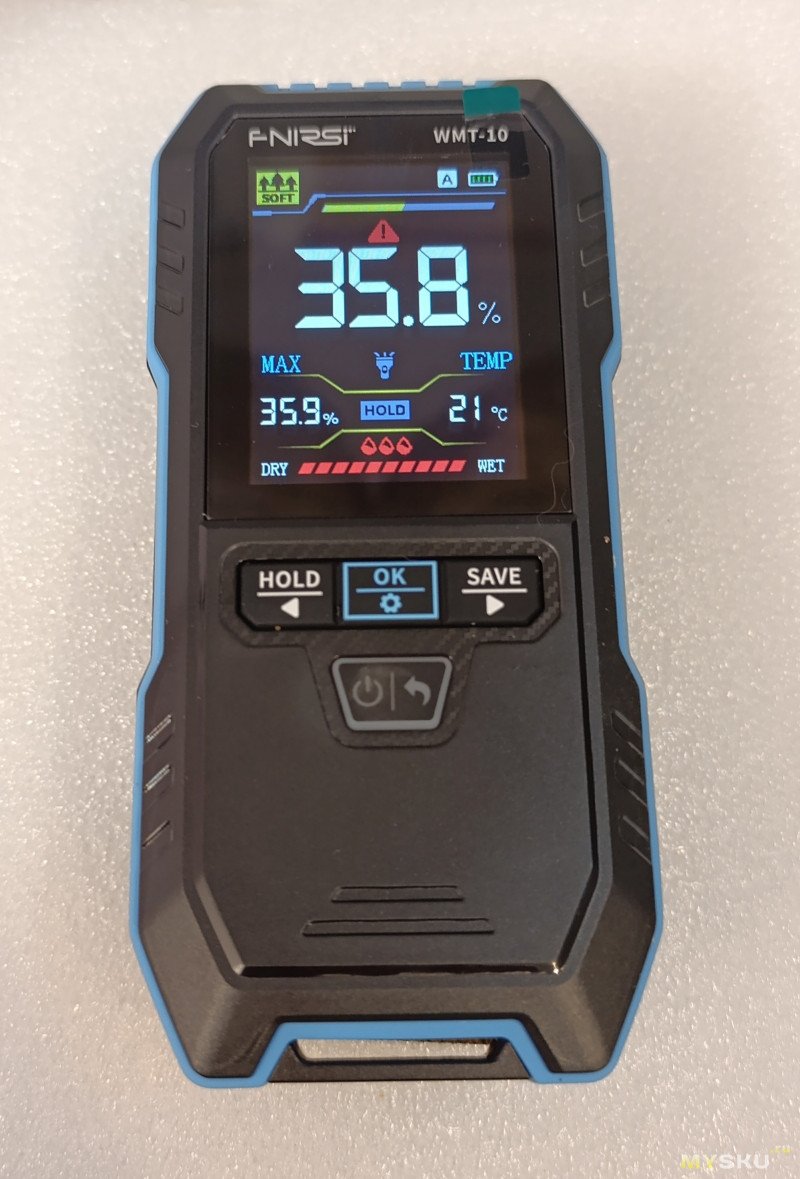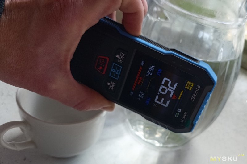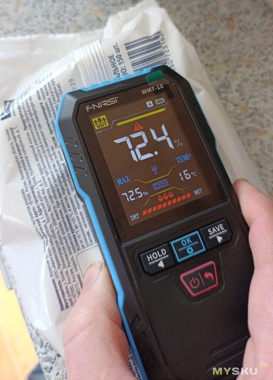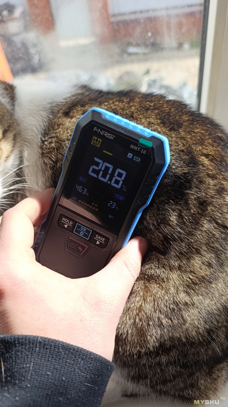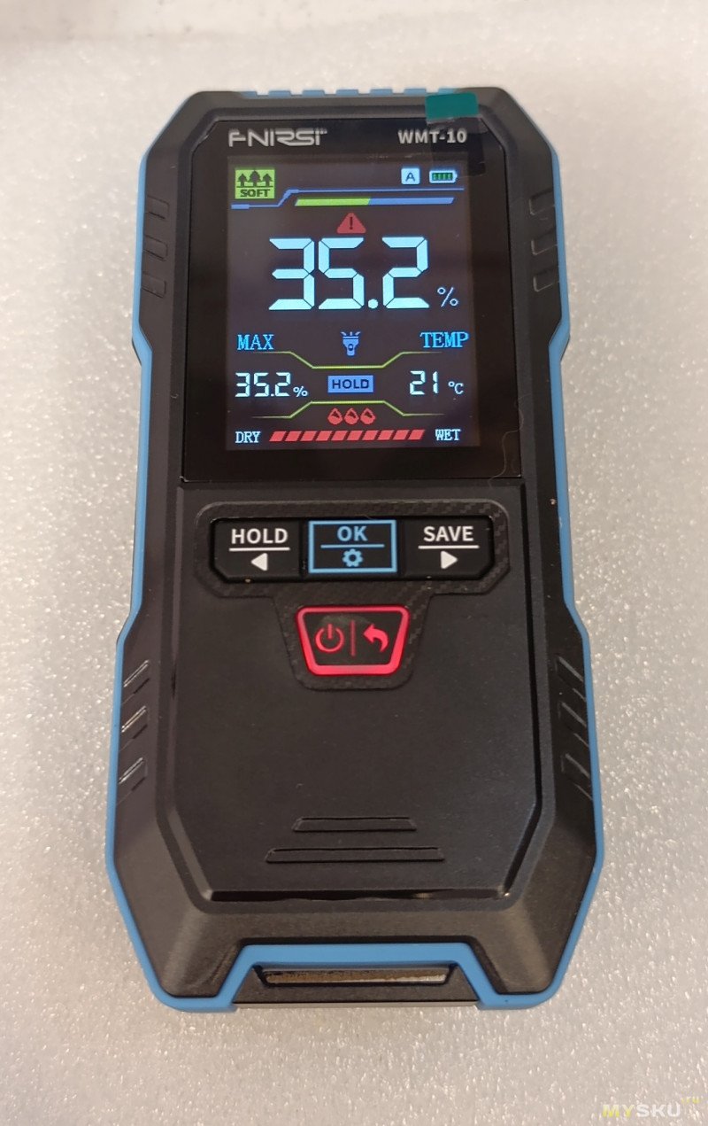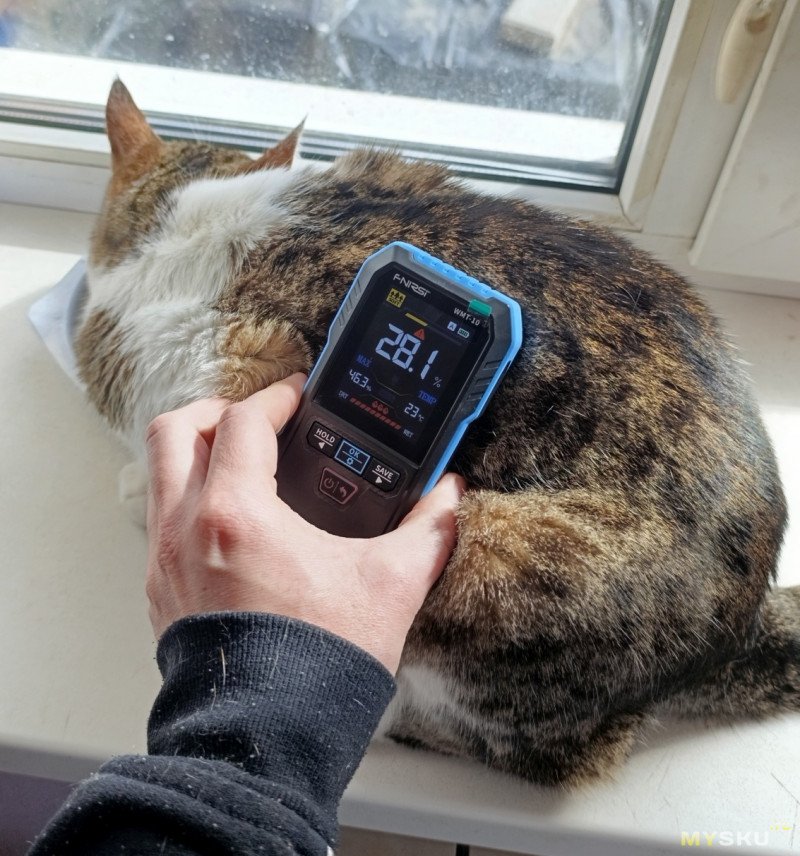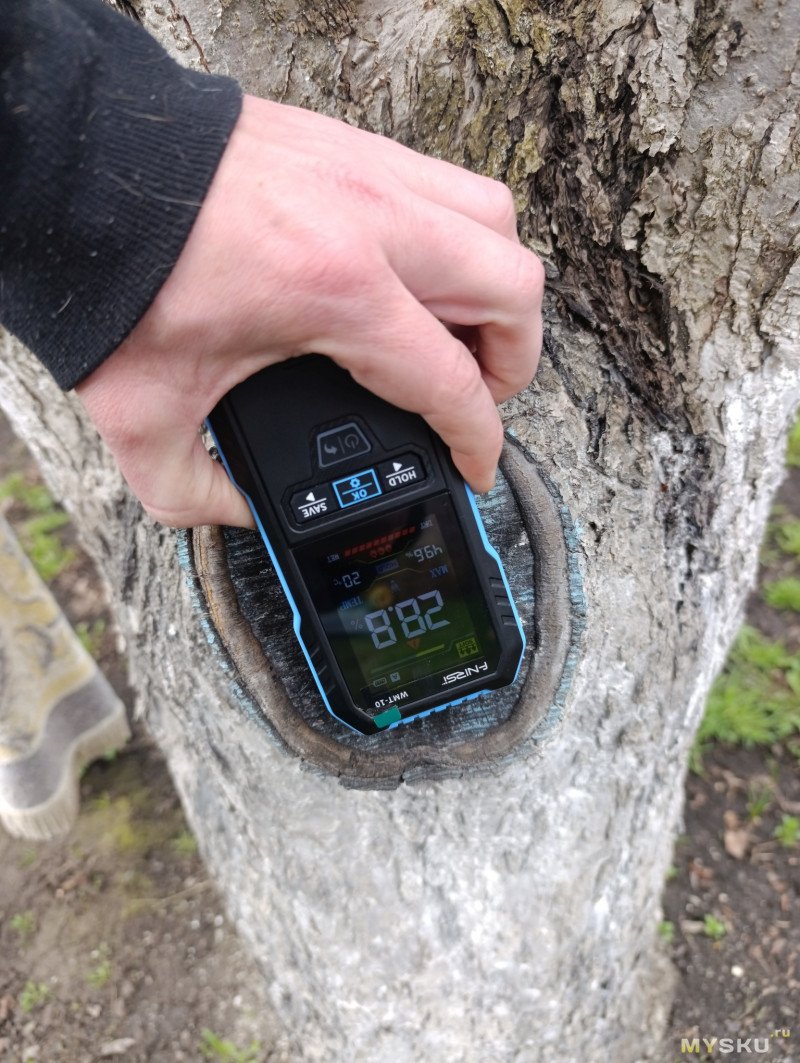 Интересный нюанс: прибор реагирует на любые токопроводящие материалы. Металл, живые растения, животные и даже земля в цветочном горшке определяются как «очень влажные» — это особенность индуктивного принципа, а не ошибка.