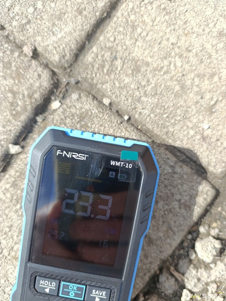 Эксперимент с тротуарной плиткой не такой наглядный как с деревом, вероятно вода более прочно связана с материалом и в разных местах показания сильно отличаются