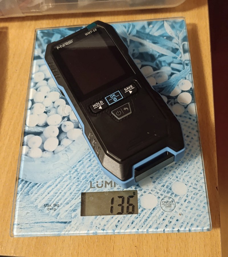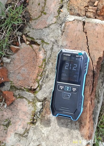 По конструкции напоминает детектор металла FNIRSI WD-02. Покупал за 1 429 руб. — для индуктивного влагомера это вполне адекватная цена. Контактные аналоги, судя по отзывам, работают менее точно, да и с другой стороны: если нужен просто замер сопротивления древесины, я могу сделать это обычным мультиметром. Покупать отдельный омметр, который лишь пересчитывает омы в проценты, показалось избыточным (ну правда 200–700 МОм требуется замерять при влажности 7%, при влажности 16% уже проще всего 2-5 МОм).