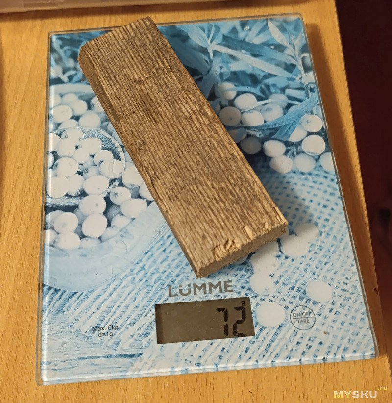 Итог: минимальный вес — 72 г, показания прибора — 4–6%. Дальнейшая сушка практически не меняла ни массу, ни показания.