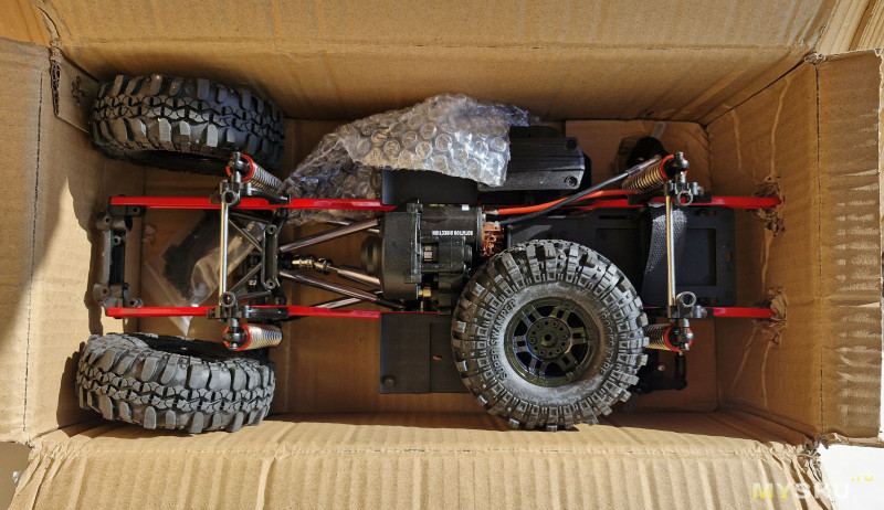 Мосты не шумные, а на колесах заметный разбаланс, но для медленных трофи моделей, это не критично.