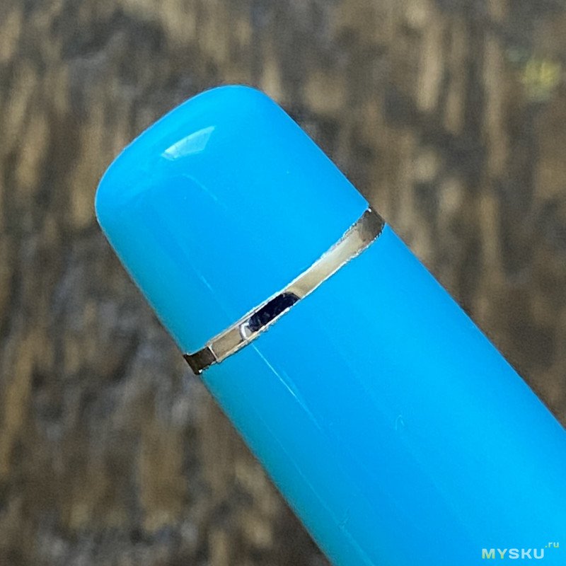 Достану ручку. Увесистый металлический предмет синего цвета, напоминающий что-то косметическое — это вполне может быть помадой. И ничего не выдаёт «породу» совершенно. Напомню, что Platinum — один из трёх топовых японских производителей пишущих инструментов. И даже ни на одну из известных мне бюджетных ручек (Preppy, Plaisir, Prefounte — запомните эти имена, к ним я ещё не раз буду обращаться сегодня) он ничем не похож. Ручка широкая в середине, чуть сужается к краям, колпачок довольно массивный, практически половина от видимой части корпуса.
