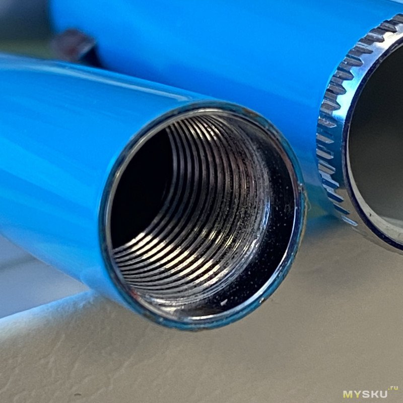 Сниму колпачок — он на защёлке, она довольно тугая, люфтов никаких нет, колпачок можно прокрутить, но надо приложить небольшое усилие.