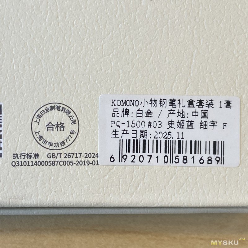 На обратной стороне коробки ссылка на сайт производителя, номер модели, размерность пера (0,3 или F), дата производства и почему-то название «Komono».